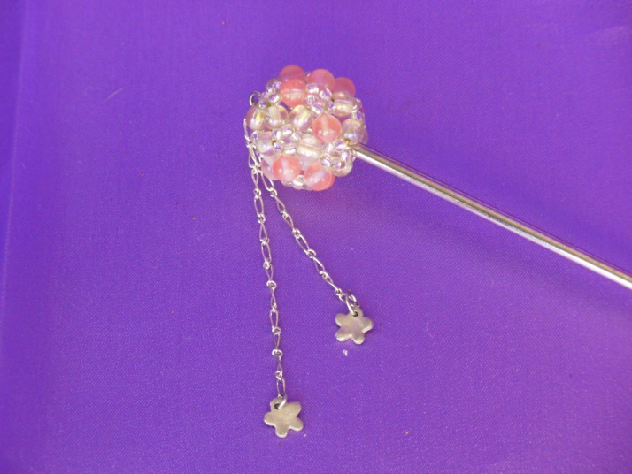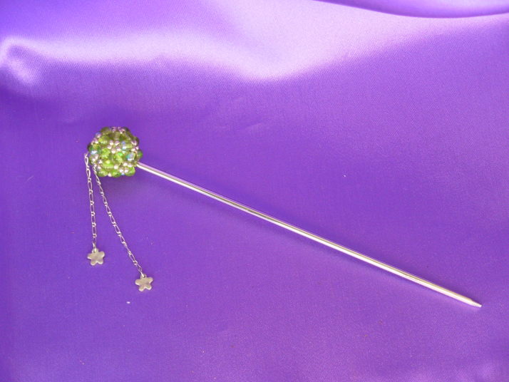 に純銀のかわいらしいお花モチーフを下げた簪。