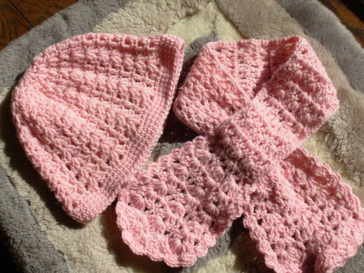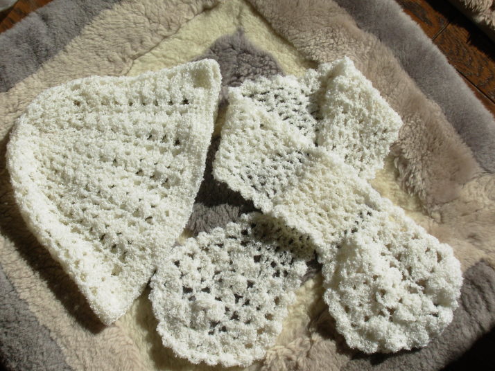 オフホワイトの極細ループヤーン使用の帽子・マフラーセット。