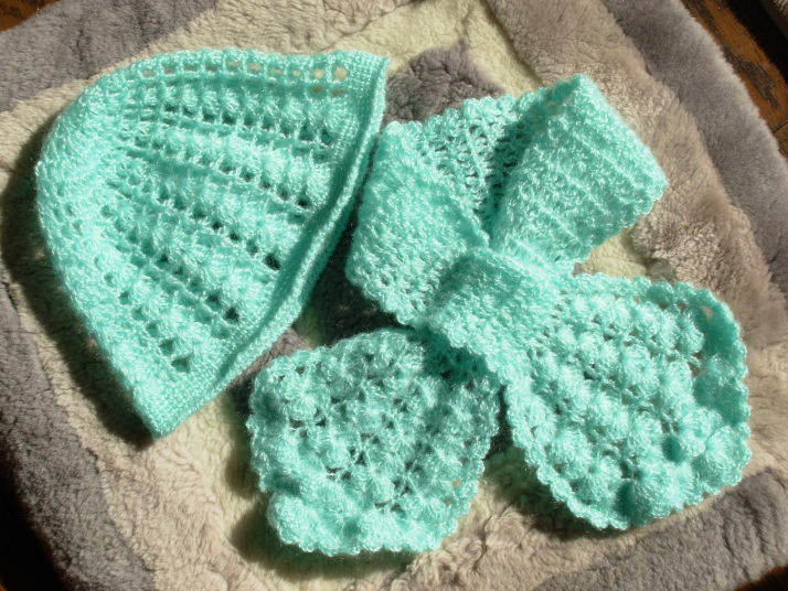 鮮やかなペパーミントグリーンのモヘヤ使用のセット。